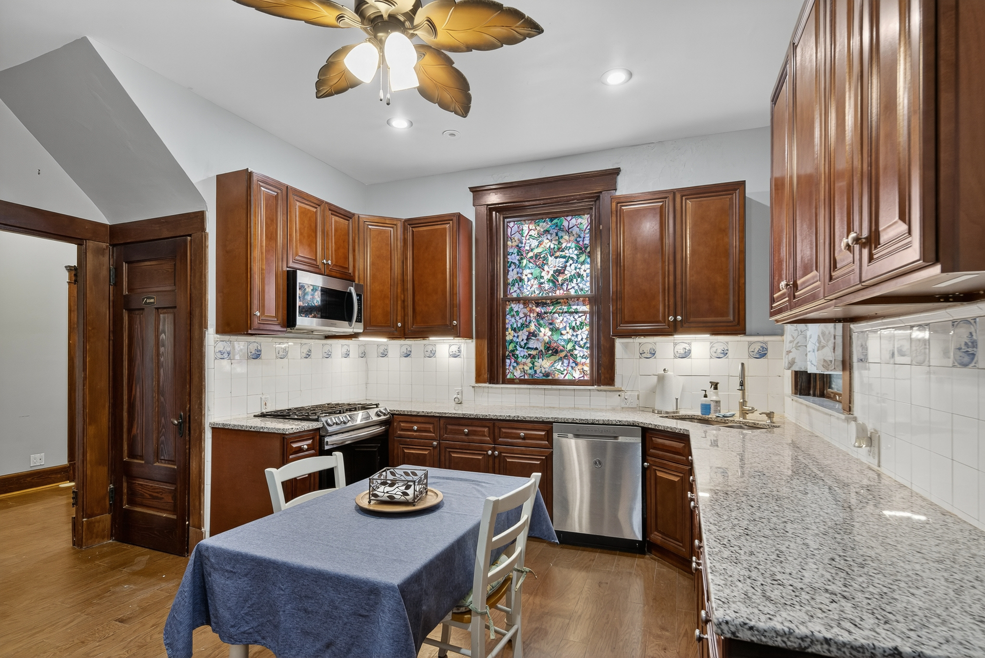 Step into history with this all-brick 5-bedroom home that offers timeless craftsmanship and incredible space. Graced with original chandeliers, elegant picture rails throughout the house, a classic plate rail in the dining room, and rare William McDonald designed Rookwood tiled fireplace, this residence showcases details rarely found in modern construction. Generously sized bedrooms with impressive closet space offer both charm and practicality. The large kitchen abuts the original butler’s pantry which provides the perfect staging area for dinner parties. With abundant storage throughout and a spacious lot that enhances outdoor living, this property is as a true opportunity to own a piece of history with the space today’s lifestyle demands & is just waiting for your finishing touches. New Roof 2021, Dual Zoned AC 2022. Boiler and AC serviced annually by Geiler.